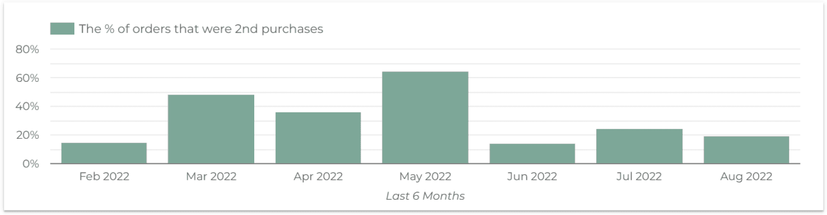 Our hypothetical team notices that lifetime value is closely correlated to the second purchase. When customers make a second purchase, not only do they spend more, but they’re more likely to make a third, fourth, etc. purchase.